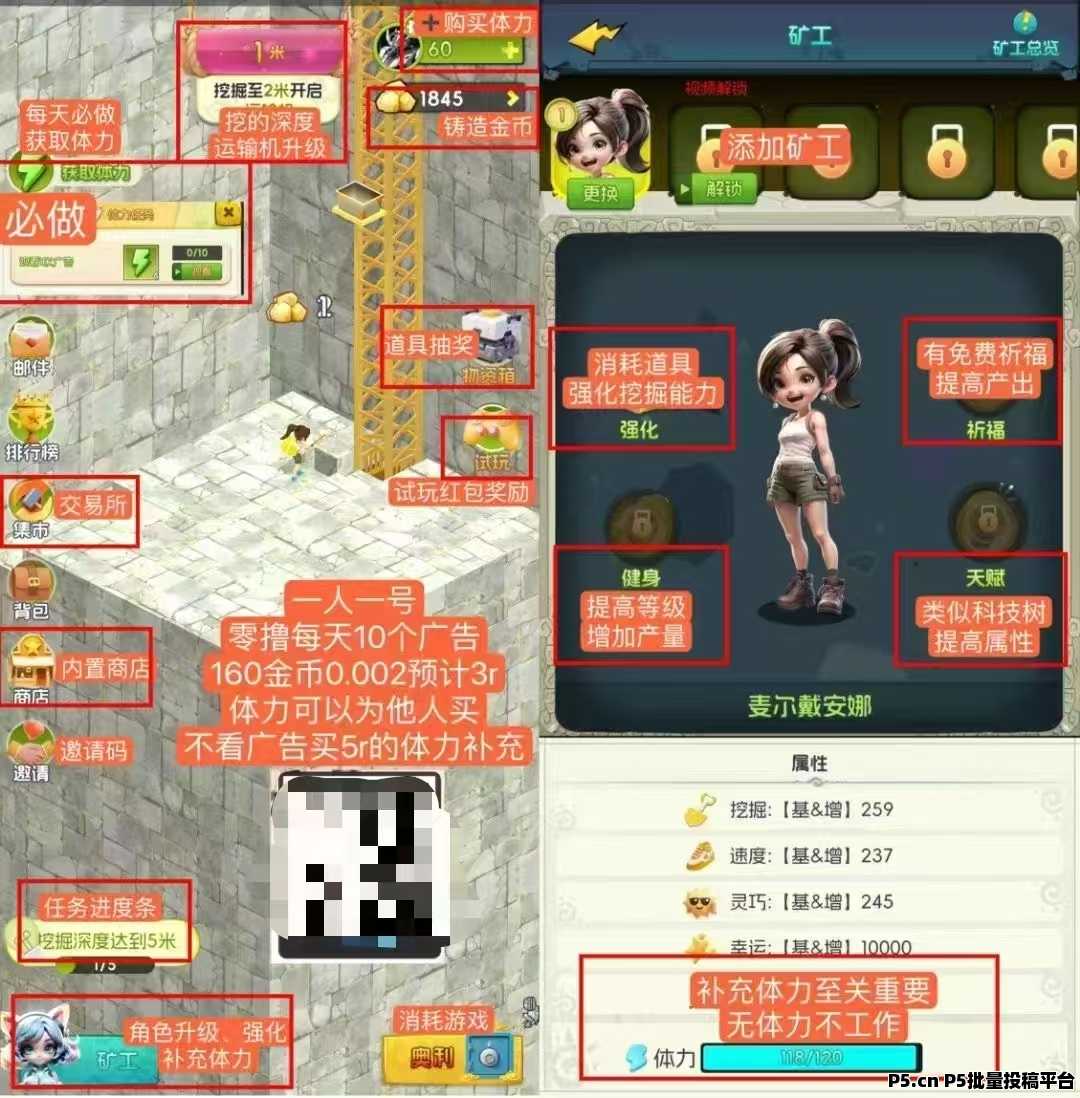 正文 矿工小能手首码零撸,每天稳定收益 首码项目1000522 V作者 /2025-01-09 09:54:03/1.12 K阅读/0评论 0109 矿工小能手首码零撸,每天稳定收益零撸用户,每天160金币。场外回收一金币0.03最佳方案,每次购买5元体力可以挖6天。省时省事省心。如果硬撸,6天完成60个广告+6个用户+30局偷家。小投购买12000金币,去商店购买麦尔戴安娜碎片和夏洛特琳达碎片去做健身,最高只能健身到10级,每天产500金币,每天消耗体力2.5软妹币。微投购买76万金币,去物资箱抽矿工,抽出矿工每天约产16000金币,每天体力消耗80软妹币。