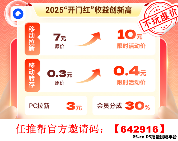 2025年任推帮夸克网盘拉新项目,为新手、自媒体人和宝妈提供了一个稳定的转前平台。抓住这个机遇,利用自己的资源和努力,实现财富增长不再是梦想。现在就行动起来,加入任推帮,开启你的夸克网盘拉新之旅吧!