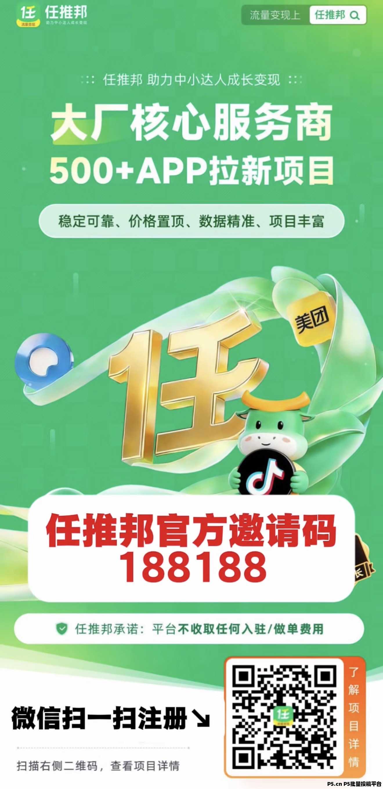 任推邦官方邀请码188188:助力中小达人成长变现的终极平台!
